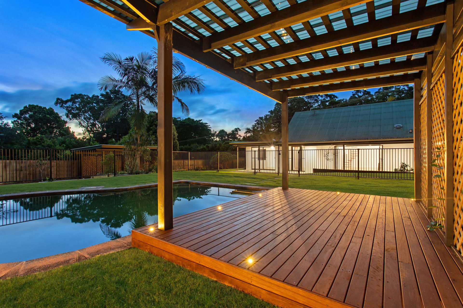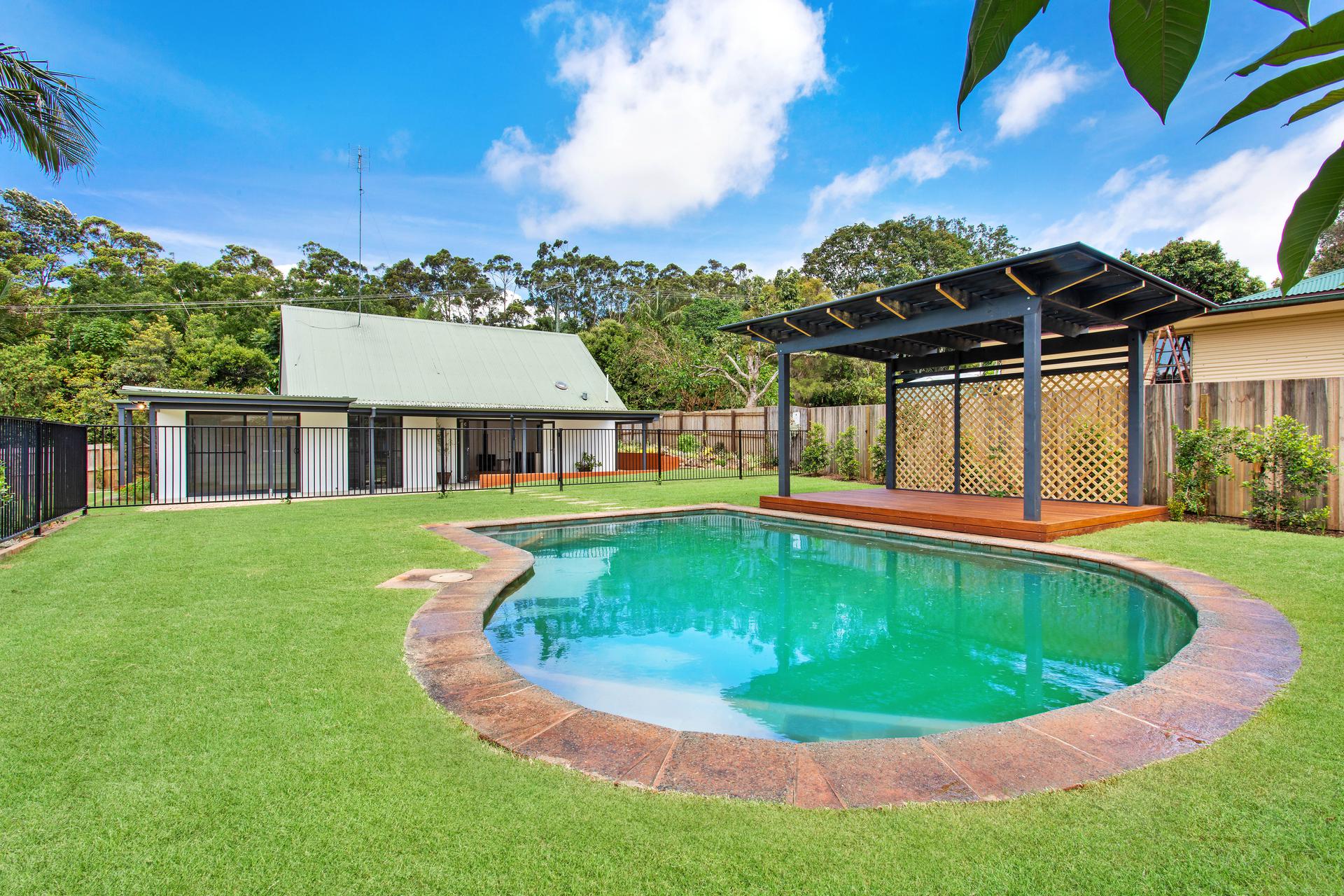 Sitting happily on half an acre there’s plenty of room for a kitchen garden, chicken coop and cubbyhouse. The In-ground pool and cabana complete the yard in style. If you need more space under roof – convert the generous 2 car garage to a teen retreat, gym or studio and you now have the perfect compound for the whole family to enjoy.