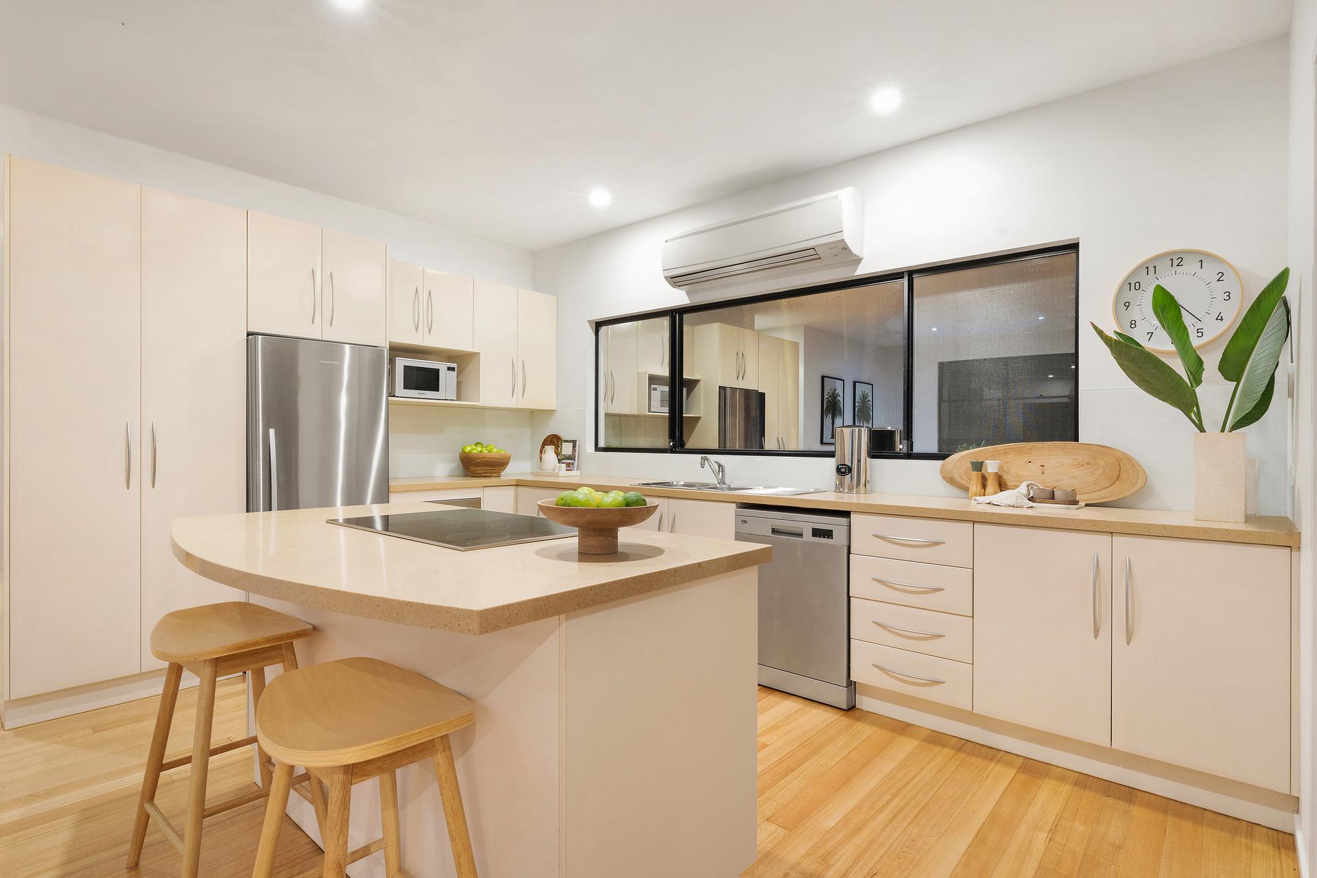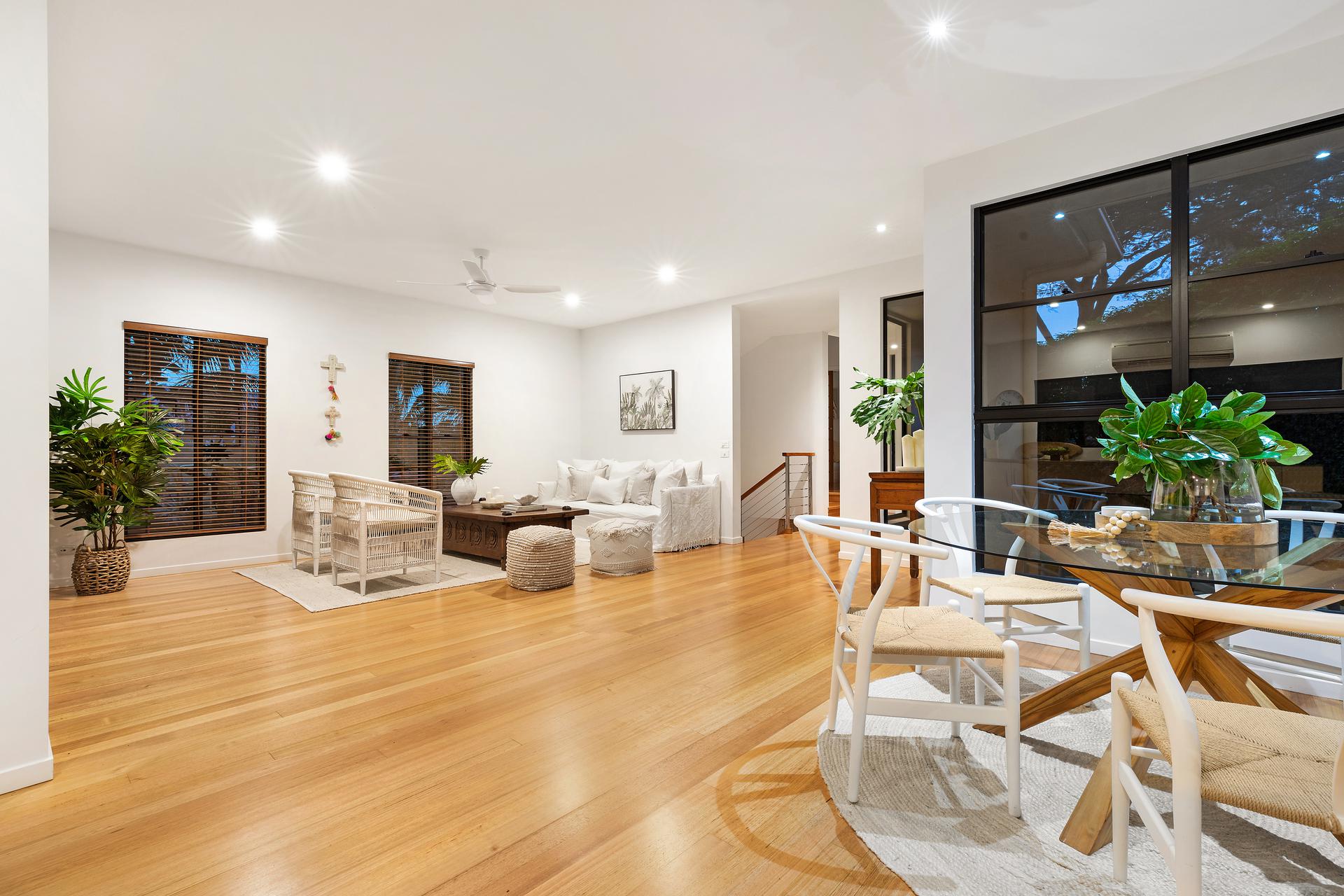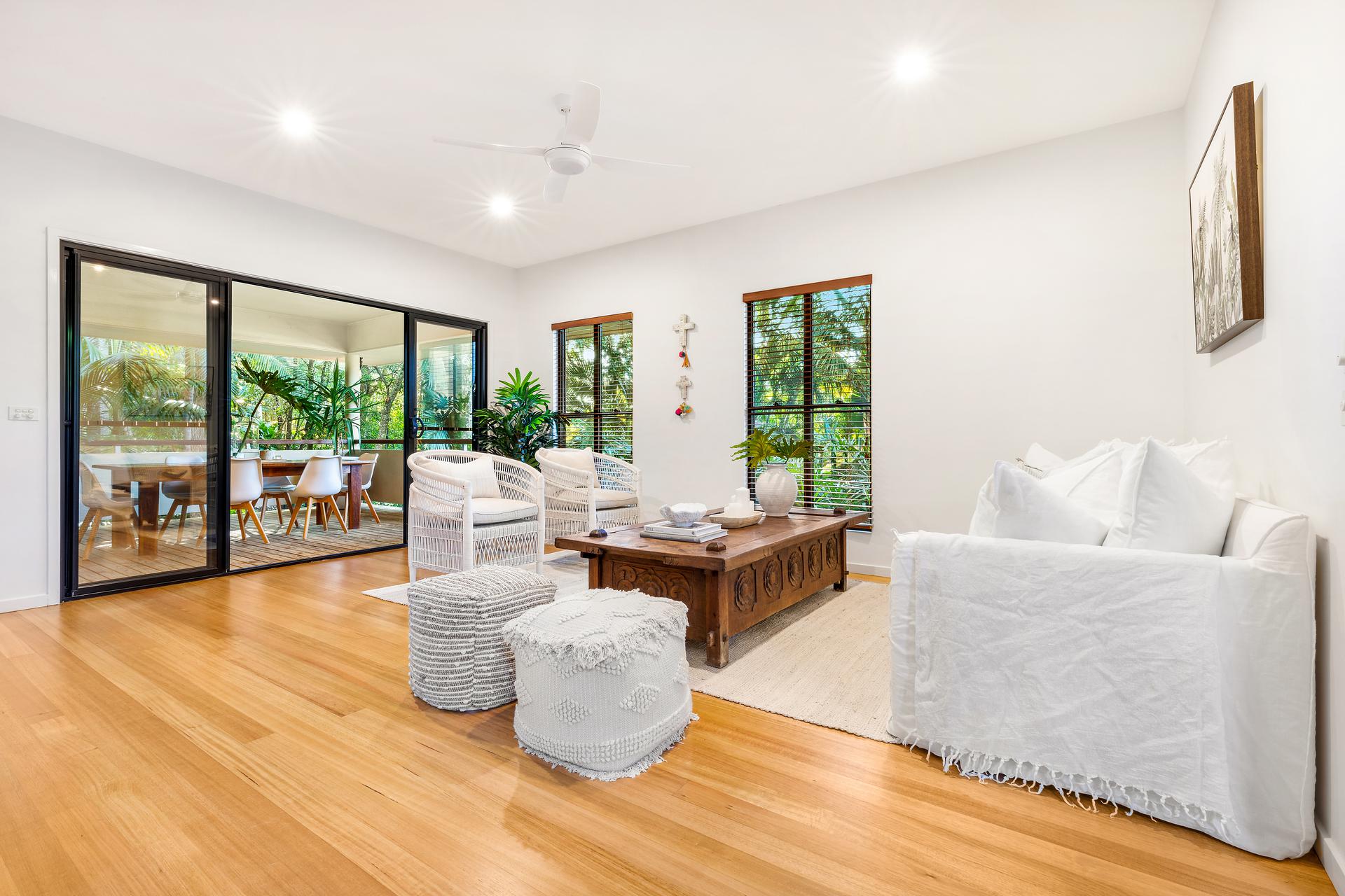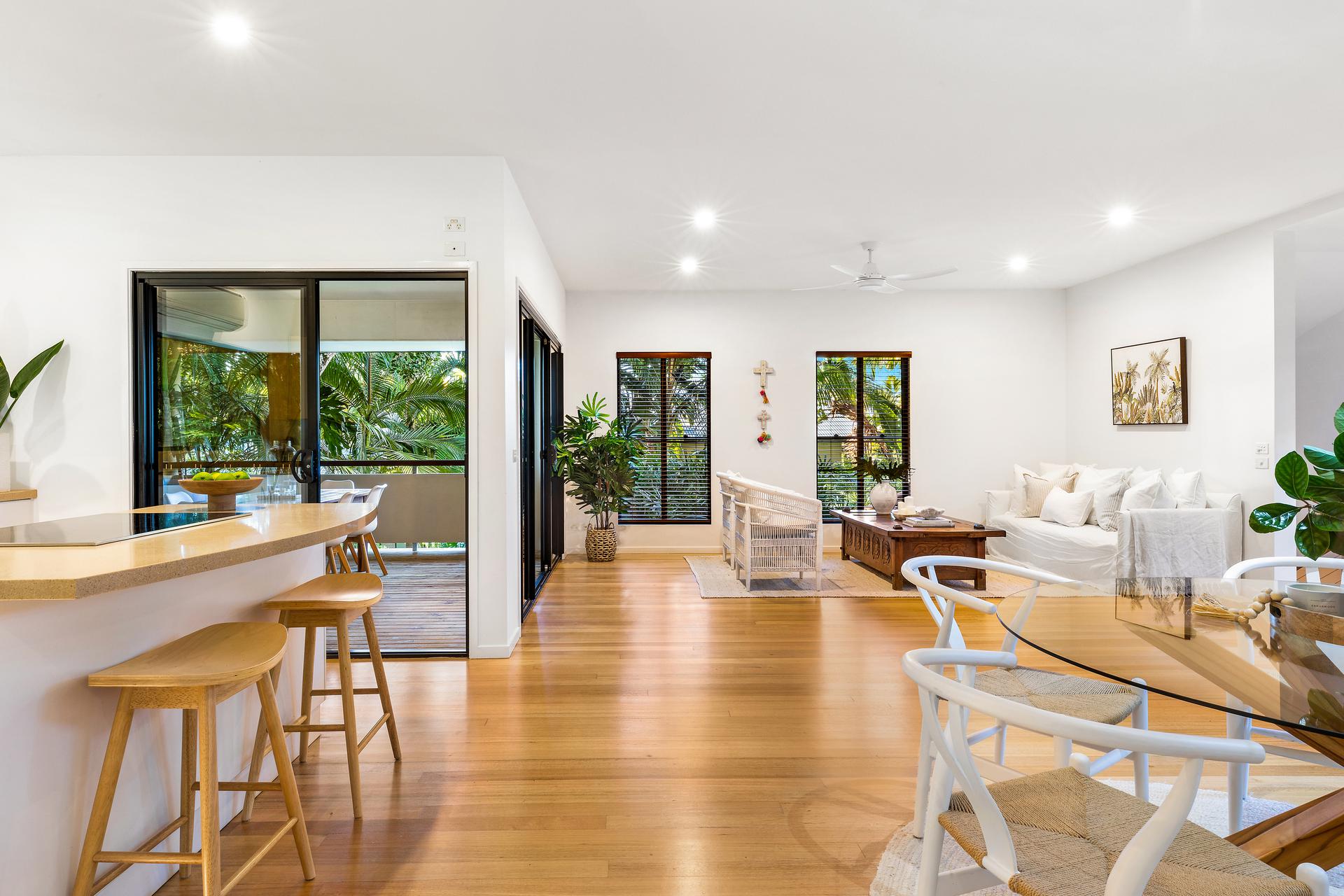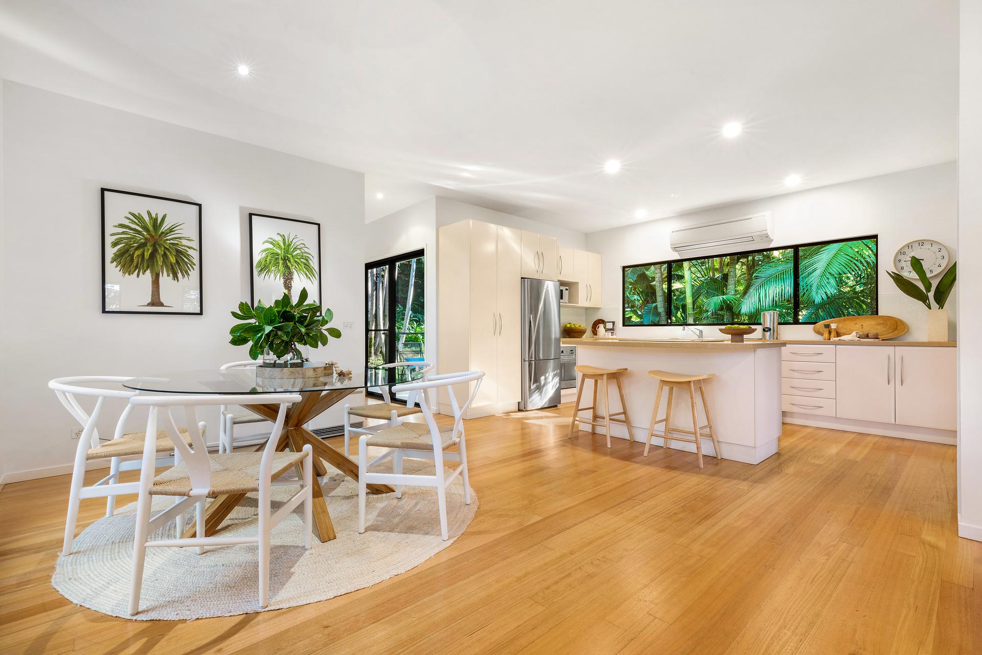 You will forever be entertaining friends and family in this easy living home. Dining, lounge and kitchen with island bench plus additional powder room across one level, providing great flow to the covered timber deck that looks out to the lush established tropical gardens. Or place yourself on the rear deck watching the Wallabies.