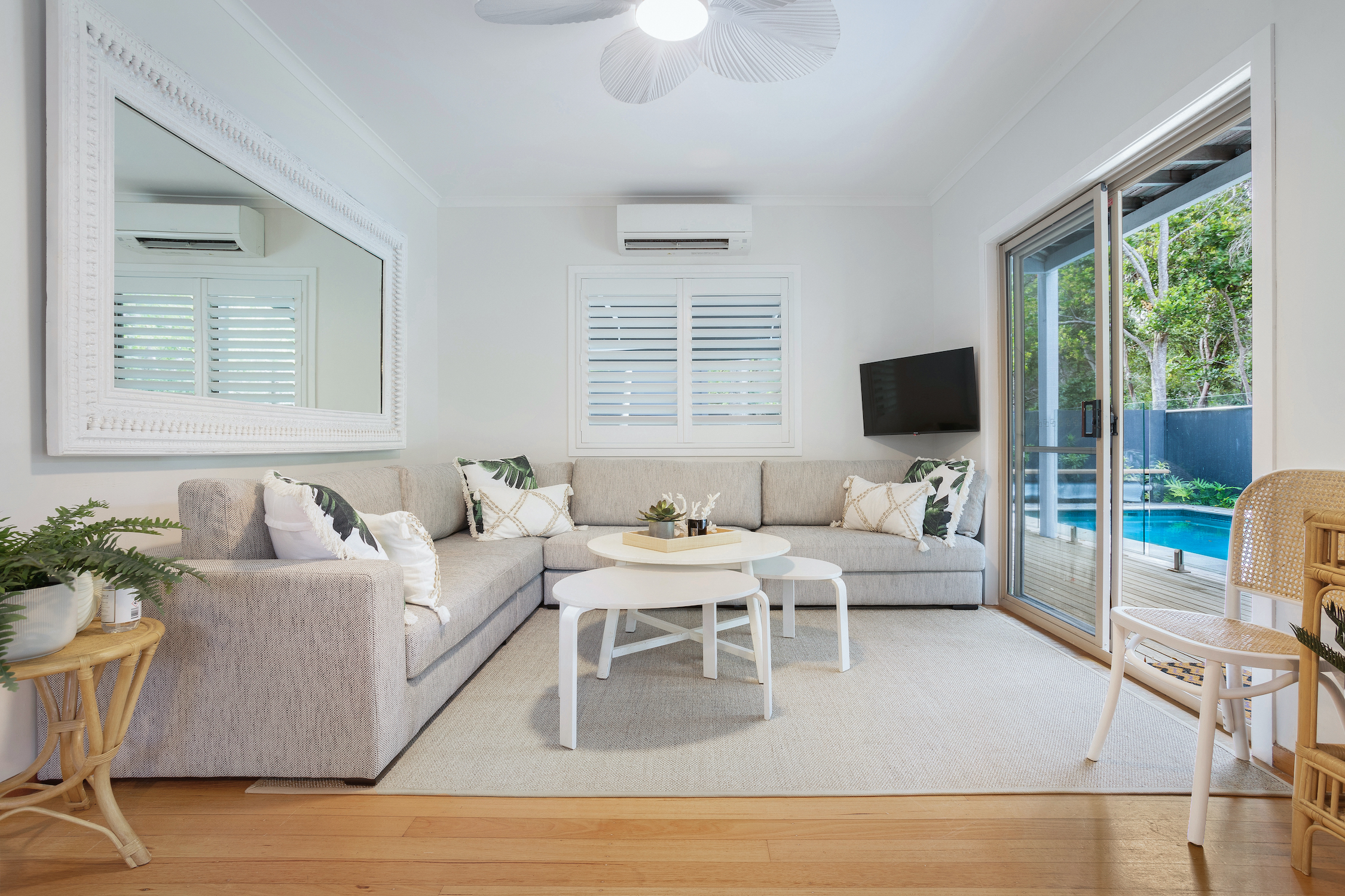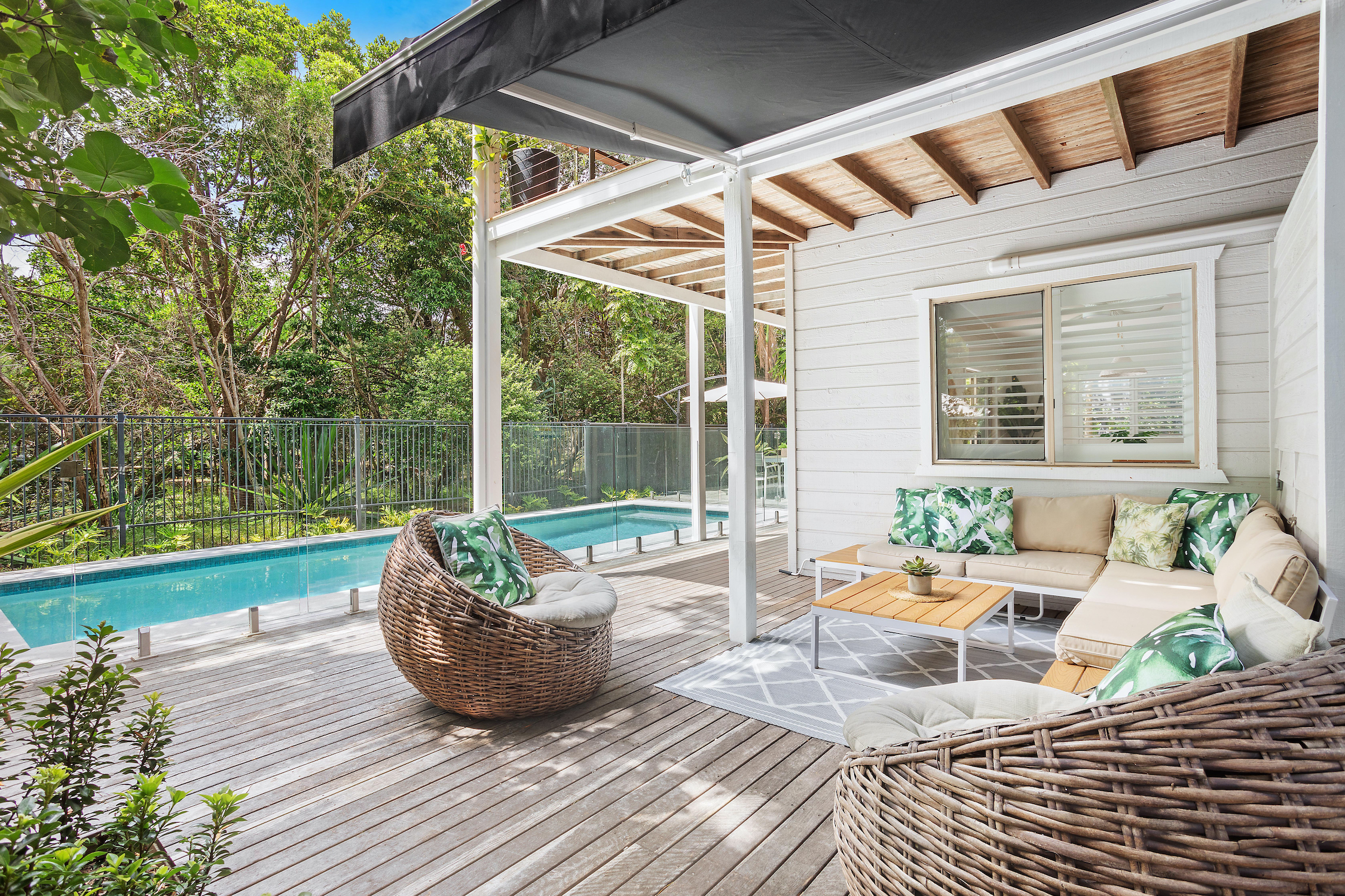 Every effort has been made to enhance the North facing aspect of the yard area. The rear of the property flows seamlessly to Midgen Environment Park creating a sense of rural living with the beach a mere 100m away. A coastal oasis, established low maintenance tropical gardens, generous timber decks creating separate entertaining zones and 8m solar heated salt water in-ground pool, you will be totally secluded and cocooned in your own poolside entertainers haven