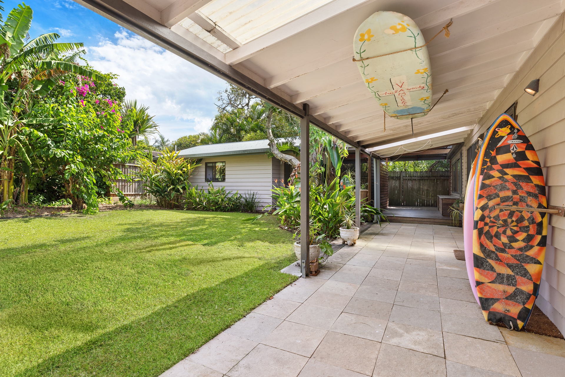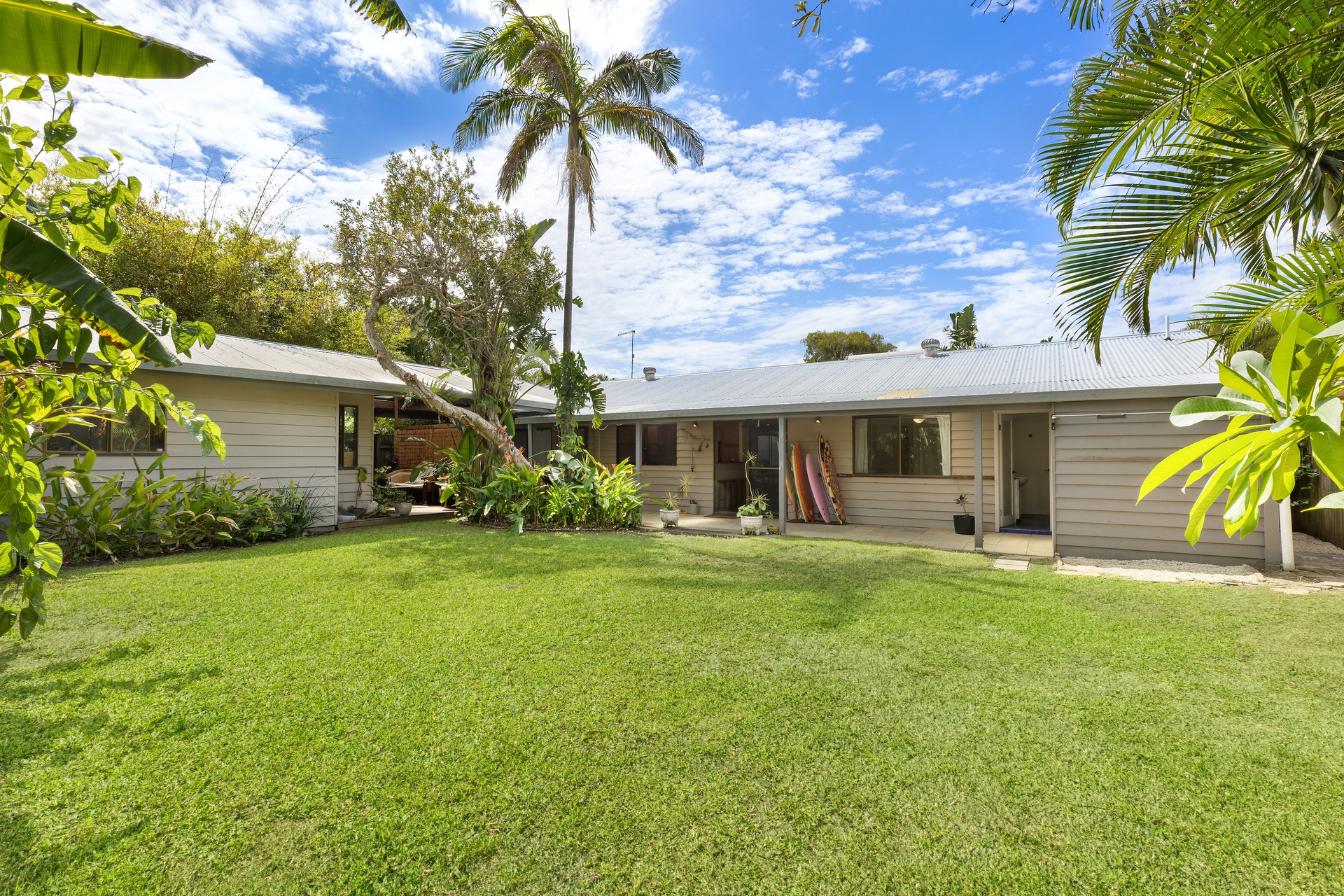 Sundrenched outdoor entertaining areas to the front and rear of the block enveloped by established tropical gardens and level lawns offering complete seclusion, there’s even room for a pool!