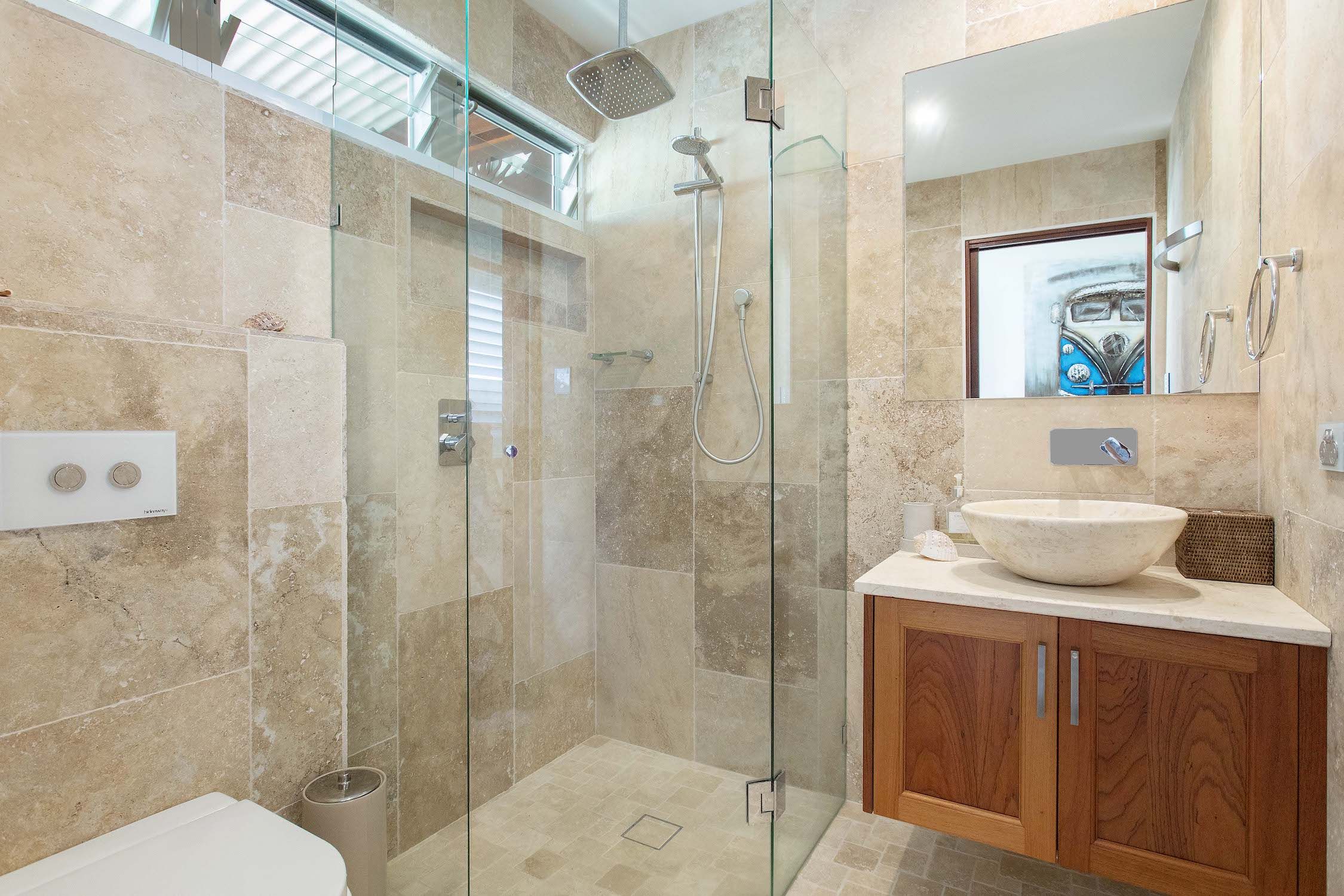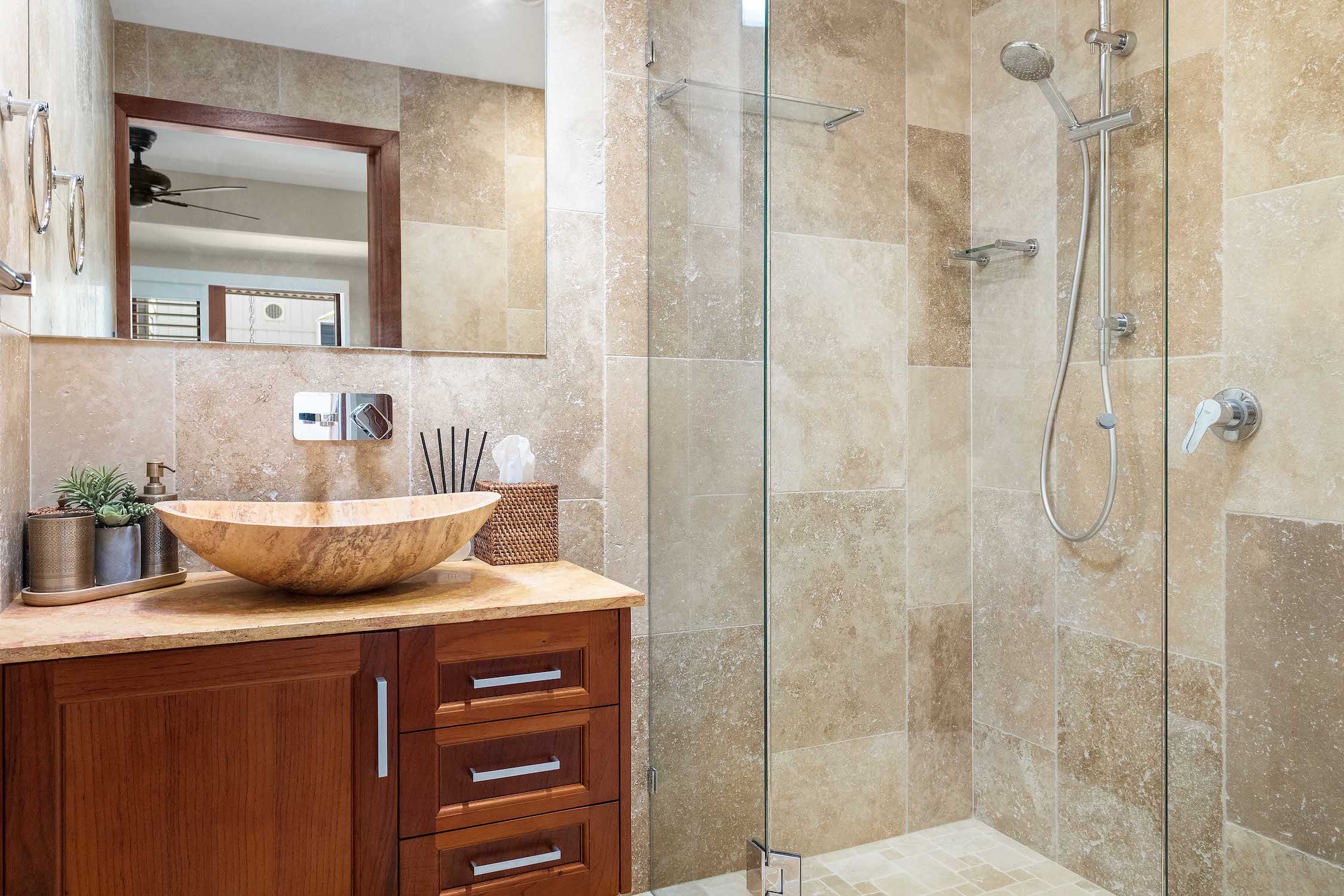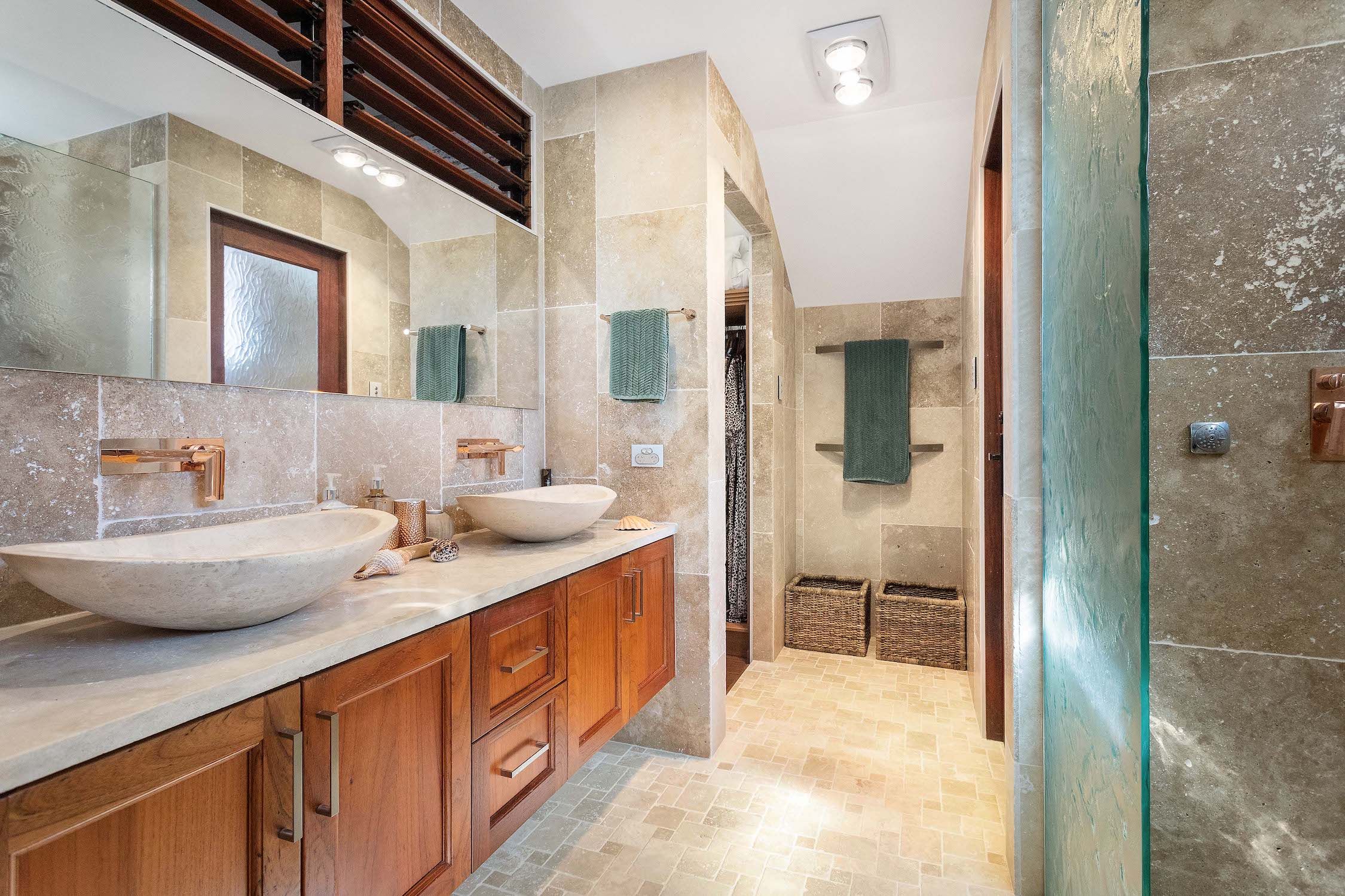 – Luxury travertine bathroom